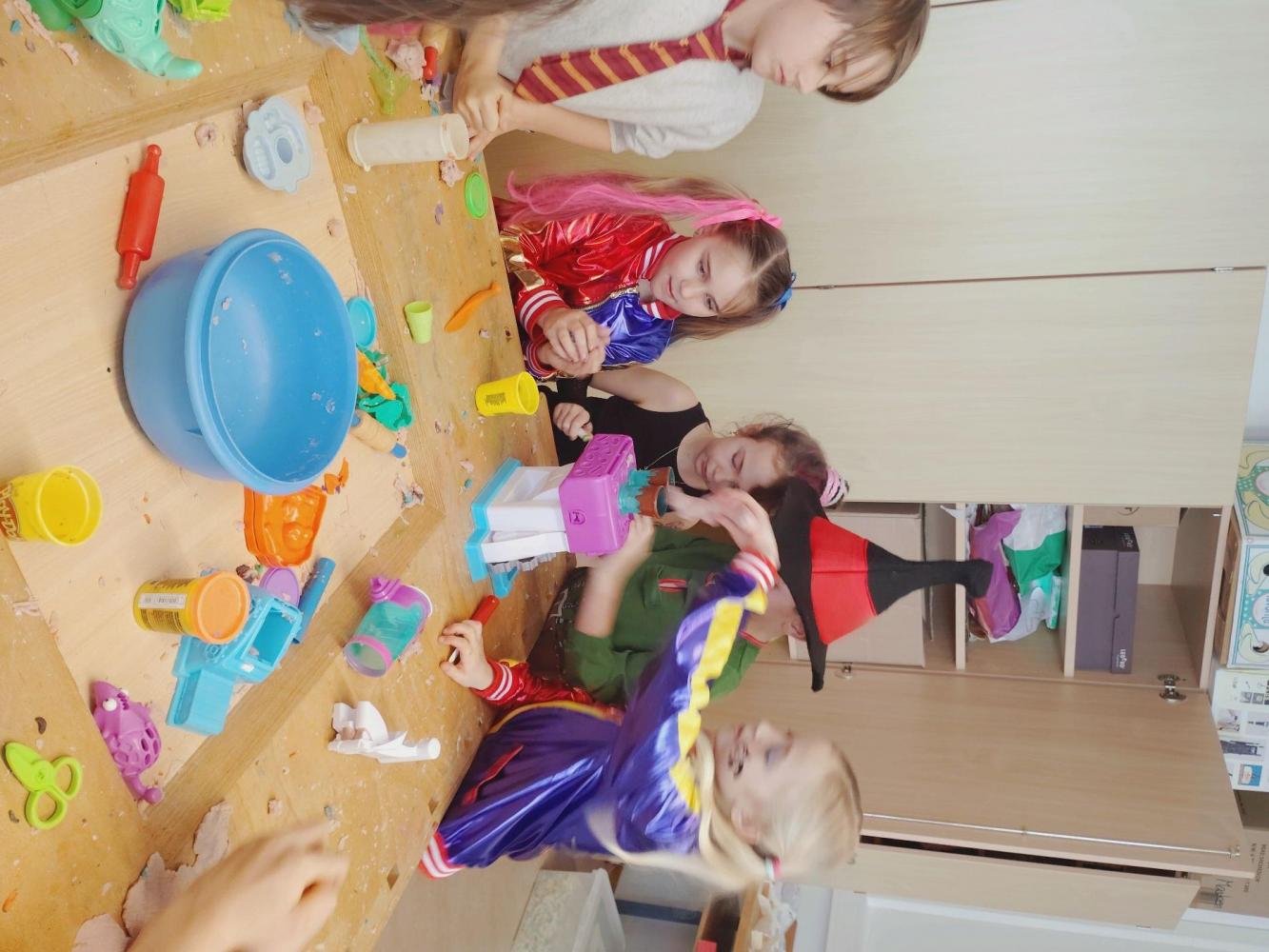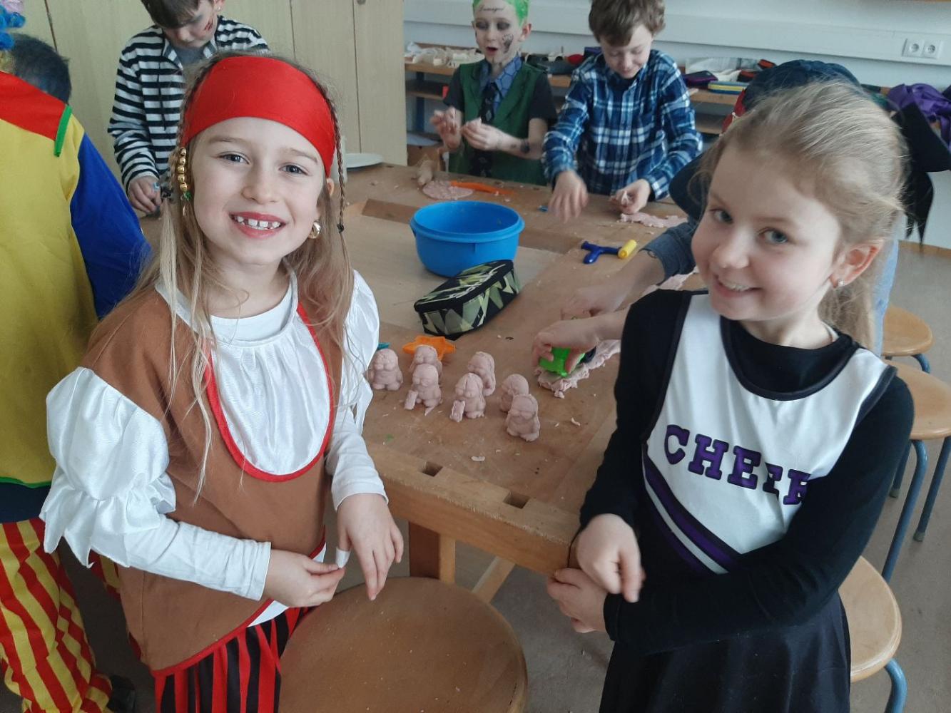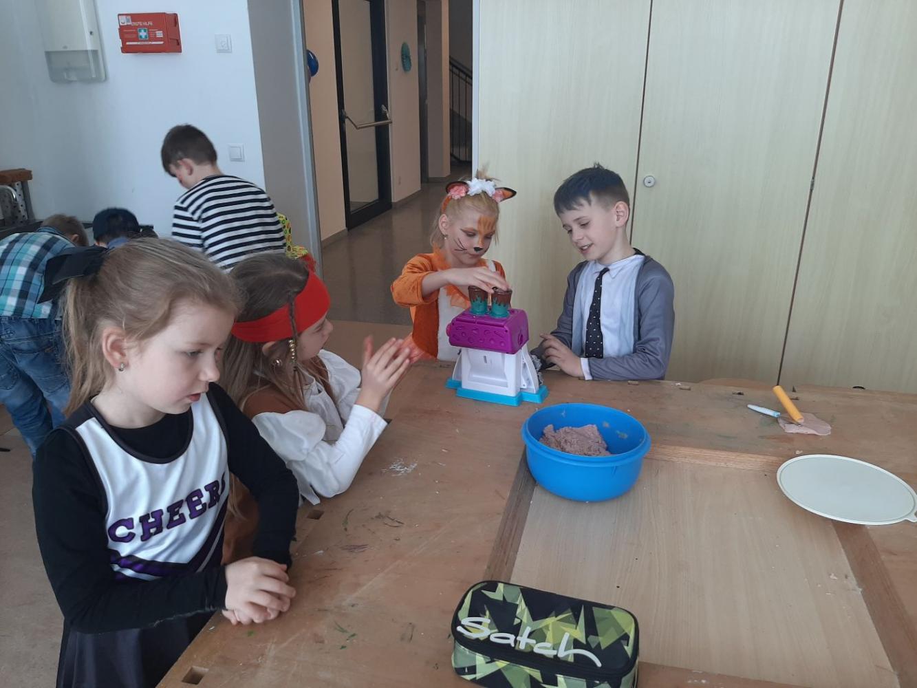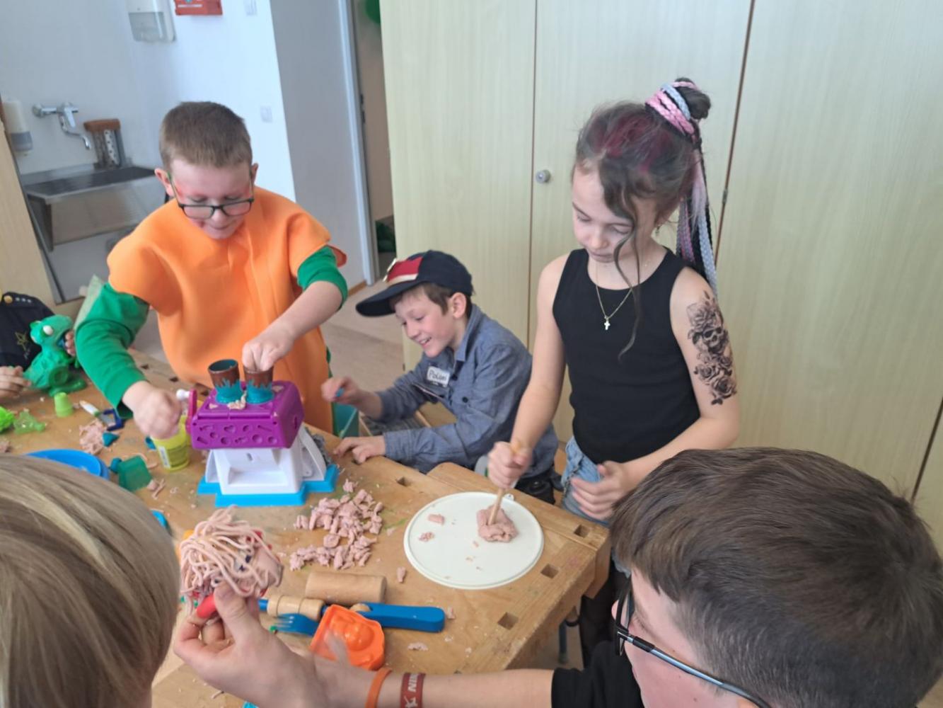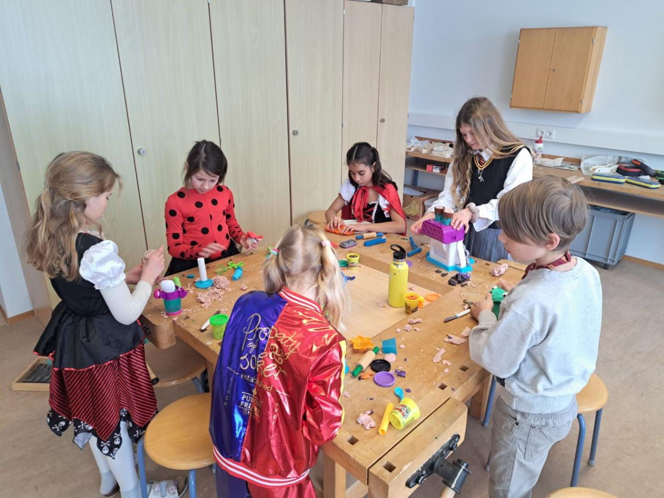 Im Kellerbereich wurde geknetet, gemalt, Spiele gespielt und gebacken.